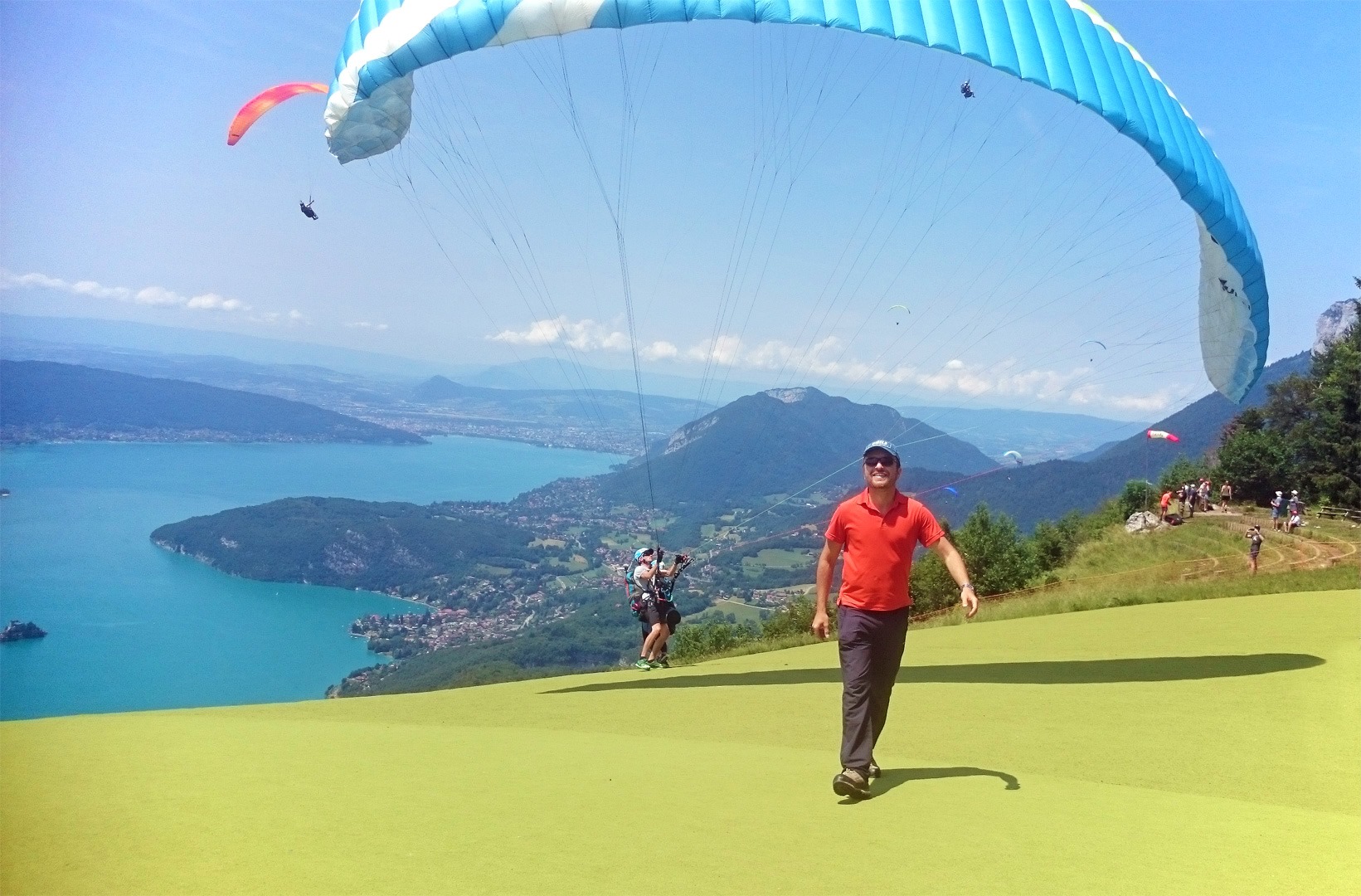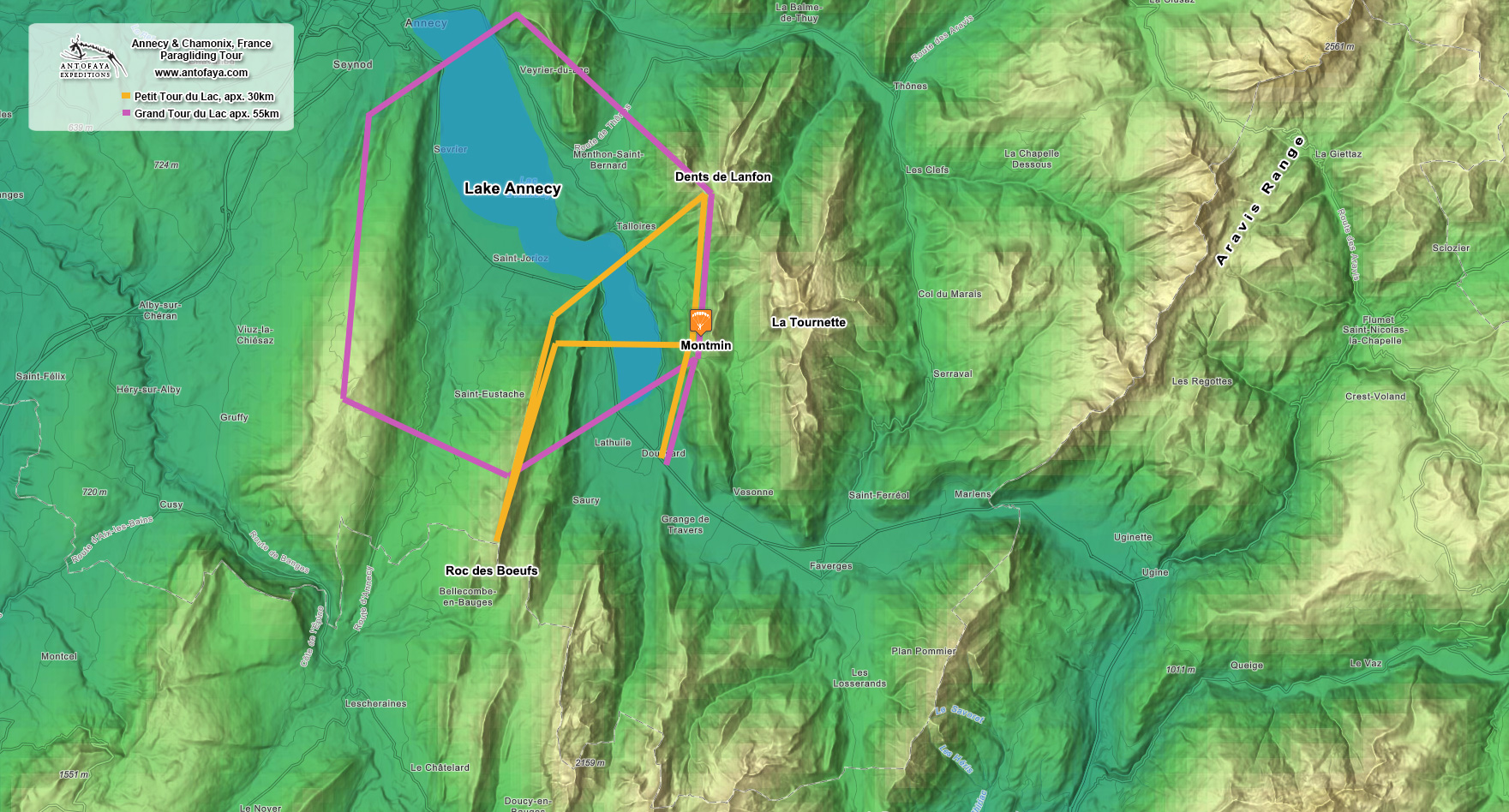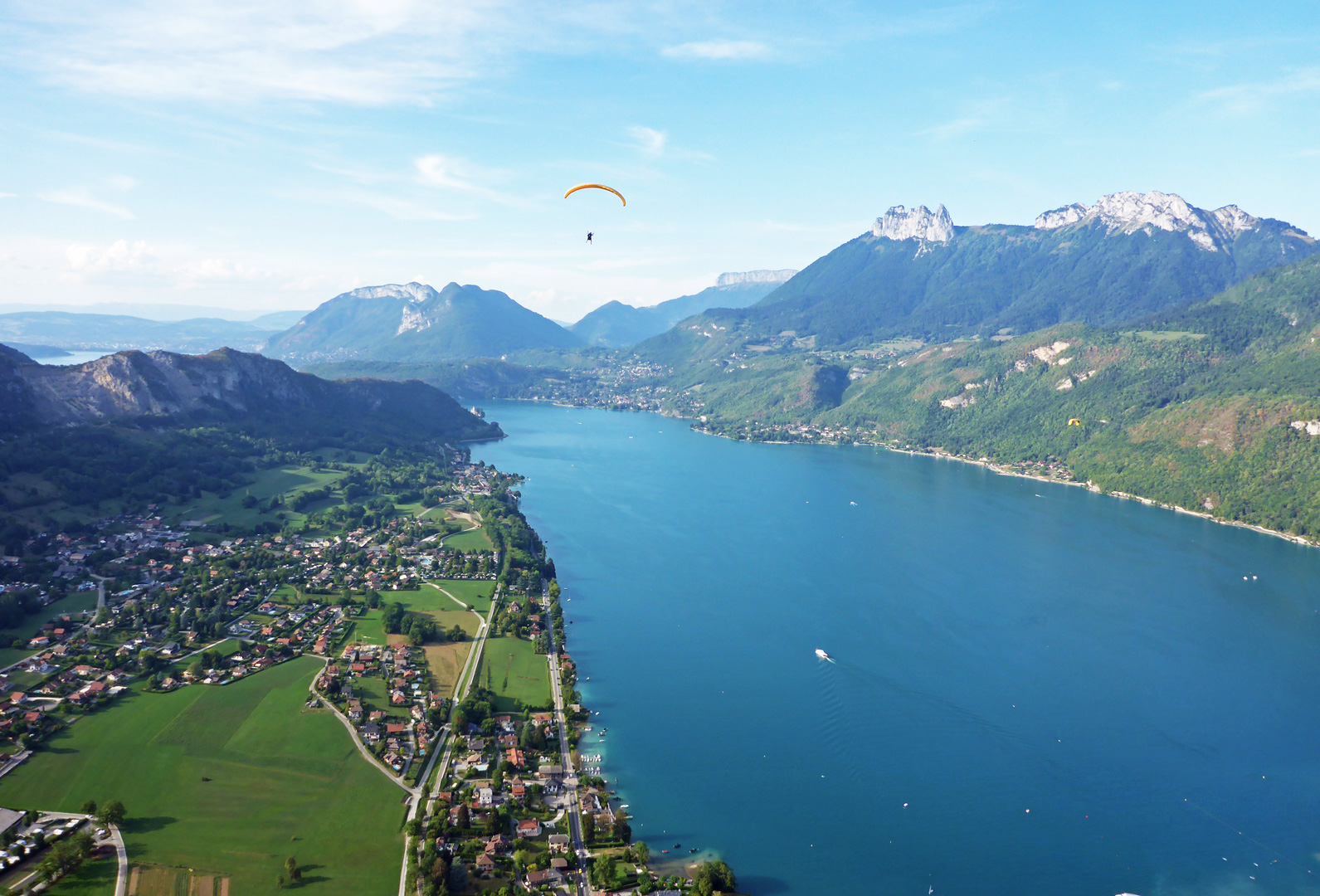 Lake Annecy witnesses over 150,000 paragliding launches per year. This is the world's paragliding mecca. Pilots flock here during April-October flying season. The mountains rising from the turquoise lake provide unprecedented flying experience and takeoffs allow access to various xc routes. The valley opens out on to the plains and provides fantastic flying opportunities along both shores of the 15km long lake. It has everything a pg pilot needs to start flying xc in spectacular surroundings. Flying here is a good way for pilots with less airtime to start their first cross country flights in the Alps and build confidence and air time. The main landing is at the southern end of the lake near village of Doussard at a big grassy field. Once you land you can visit various paragliding shops and browse the latest in flying equipment. Annecy is a free-flyer’s paradise and the Alps’ most popular flying area with local community and authorities being supportive of free flying like nowhere else. |