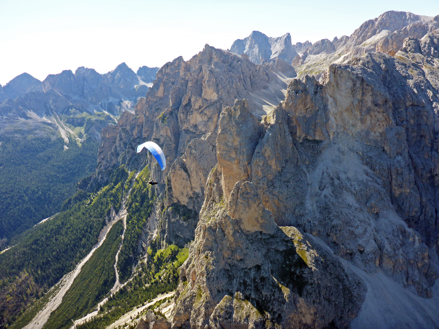 The paragliding season in the Dolomites starts in September and lasts trough October. During that time skies above Dolomite's Fassa Valley are full of paragliders running away from autumn inversion and season's end at the rest of the high Alps. While long XC flights are possible the main attraction is paragliding sightseeing, thermal & technical flying. |