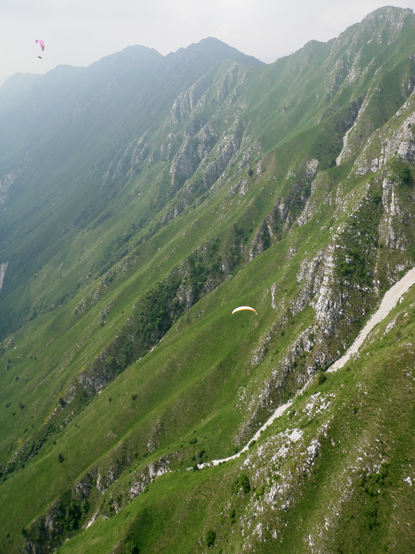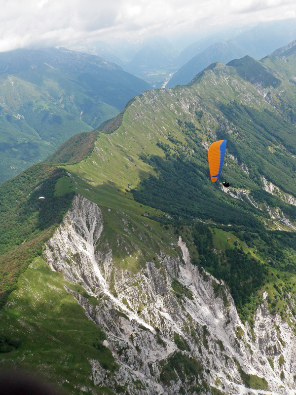 It was a total of 100 kilometers flying along high mountain ranges of which some rise over 2,500 meters in altitude with impressive and imposing rocky walls. A wonderful show that one can only see in great sport video documentaries. For me flying my Avax XC3 from Kobala, through Kobarid and Stol, across the Italian border, and following these great mountains to Gemona and a return back, despite the sudden changes of the wind direction, was not very simple to achieve. I remember a single radio communication I had with my friend Jarek: - How much altitude do you have? - He asked me while circling above me in a thermal at 2,200 meters on our way back toward Slovenia from Gemona, Italy. I had a couple of seconds to make the decision. I looked with attention at my flightdeck to check if my Spot satellite communicator was working. Just in case of an unplanned landing. |