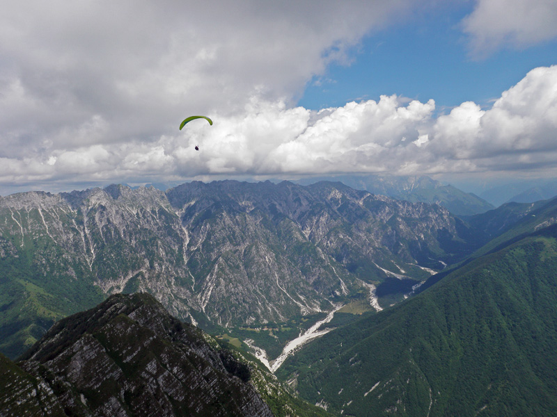By Jorge Riviera I live on a far away desert at the end of the world. So it was only natural that nobody believed me when I was telling stories of lush green valleys, dense forests covering mountain slopes, never ending high pastures, mighty vertical rock faces, tall wild peaks, and the emerald river below. But yes, there is a place like this and paragliding there is simply unforgettable. In June 2012 I gathered a group of thirteen adventurous pilots and off we went. We went to Slovenian Julian Alps. And flying there this season exceeded all my expectations. There were some personal bests. There were a few 100km flights. There were classic Slovenia - Italy - Slovenia out and return XC flights. There were Italian pizzas galore. I could write how amazing all of it was for pages but instead I will let one of the pilots from our group tell a story of one of his flights. For Jorge Rivera it was the very first chance to fly in Europe and in the Alps and this is how he saw it: |